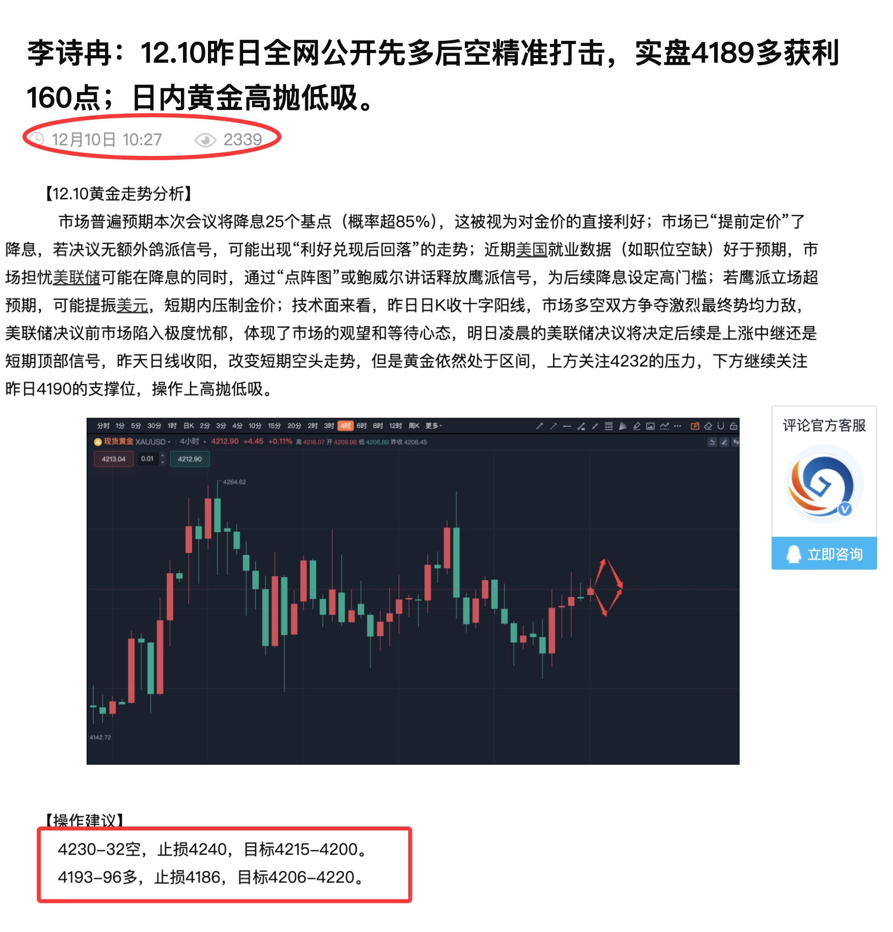 12月黄金表现解读:从过去十年走势来看,12月金价下跌概率高于上涨概率,但近几年通常是下跌的,故本月可考虑逢高做空。
