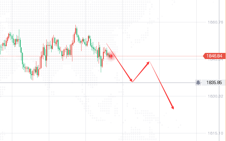 早盘关注1846强弱分水,黄金走强会在1846附近走高测试1856一点阻力,破位上去黄金继续测试1878阻力,走弱继续测试1840关键分水岭,有效破位《有效位1836》下方继续下探1820-10区域!