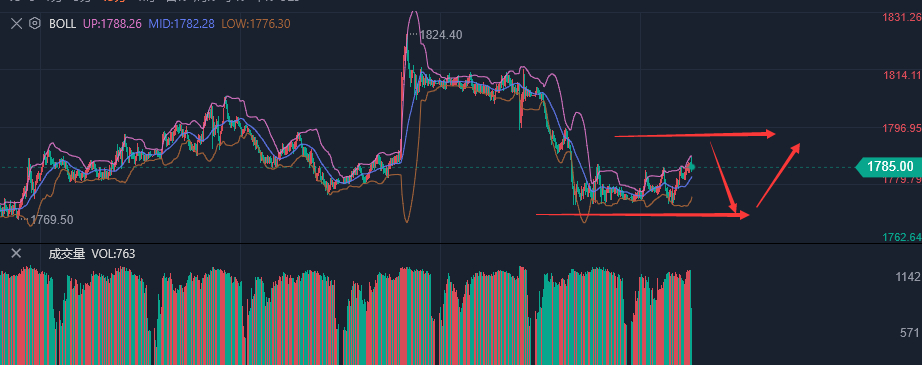 黄金策略:1775,1780做多,目标1795,止损1768,1798做空,目标1780,止损1805