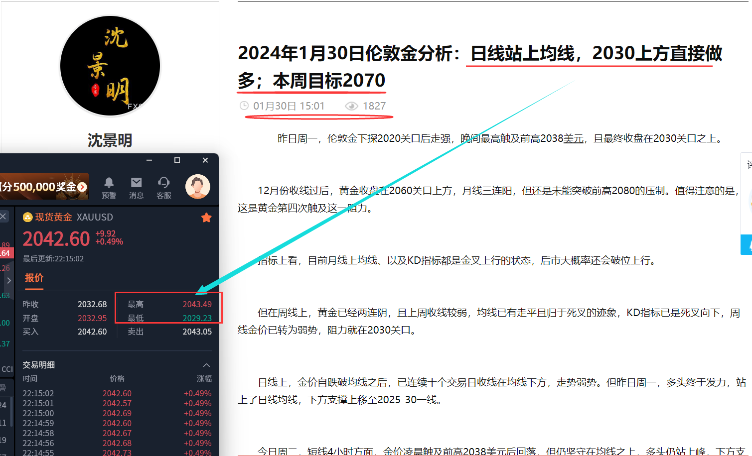汇通网1月31日讯—— 2024年1月31日伦敦金分析:日线站上均线,隔夜2030多单目前报价2036;自行控制利润;