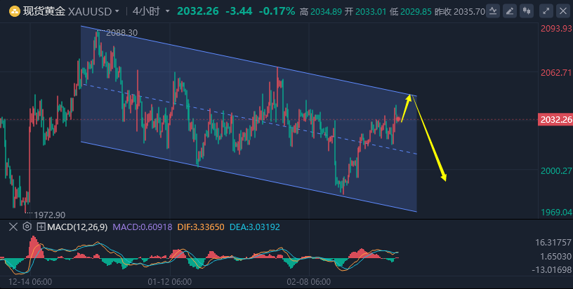 国际黄金上周震荡走高,周线收小阳,日线收吞没大阳,价格站上中轨之上,短线来看有进一步上涨空间,日线级别本周价格有望冲击上轨2055一线,那么接下来我们依然需要继续看涨黄金。4小时图来看,黄金探底2016二次上升,2016则是本周的多头分水岭。回踩中轨2027为第一支撑,短线先看进一步反弹延续,向日线上轨2055附近靠近,但能否进一步突破,得结合形态来决定上行空间。目前短线形态还是一个拉锯震荡当中,小周期偏向上震荡。日内操作逢低做多为主。