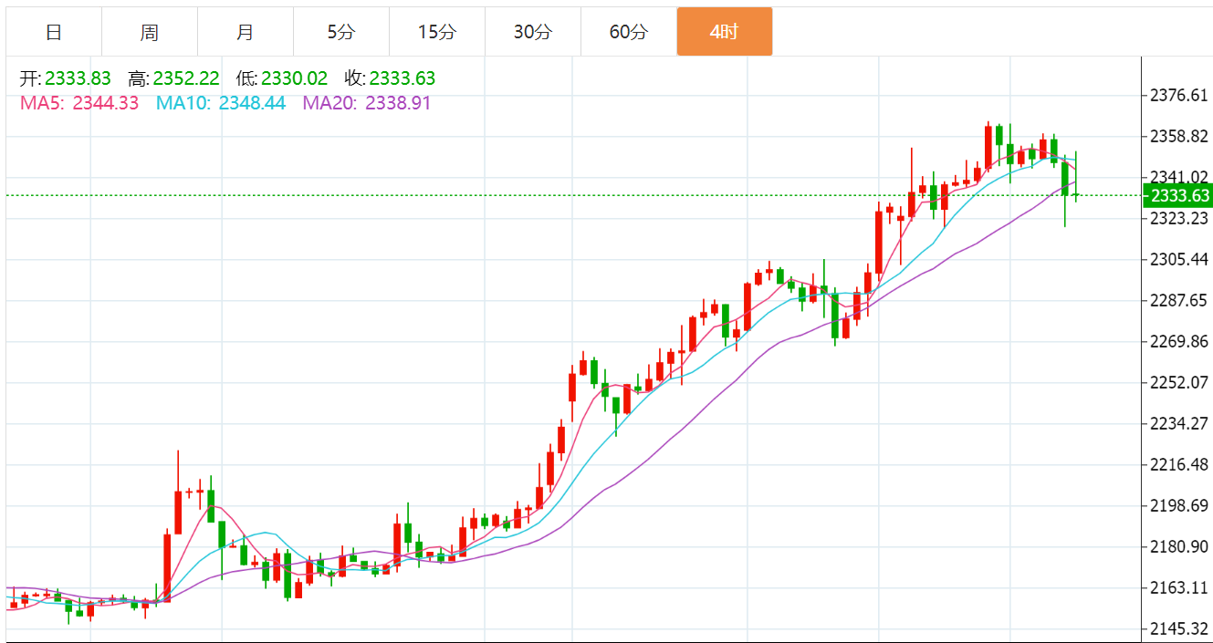 综合来看,只要下跌仍可继续做多,一次下跌是无效的,无法改变趋势,日K有连续性下跌我们再看空,当前仍主多;回首趋势,前期的强阻位:2080-2100关口,已经是很遥远的事情了,或许2000-3000区域属于新一轮行情,当前处于底部,这点我们后市再看,只是当前还不适合猜顶;价格如期回调修正后维持上行,短线预计依旧依旧如此,不建议轻易抄顶和高位追多,要做还是回调多为主,但无论多空一定要做好风险控制,所以黄金晚间短线操作思路上贺博生建议以回调低多为主,反弹高空为辅,上方短期关注2350-2355一线阻力,下方短期关注2320-2315一线支撑。