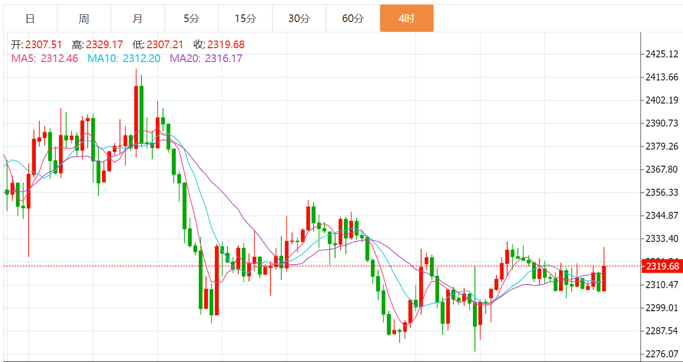 周三黄金价格总体呈现下跌的状态,回顾周三黄金市场表现,日内可谓是持续震荡,多空均没有延续,但从最终收盘看黄金依旧阴线收尾,价格持续在日线阻力下方运行,随着时间的推移目前暂时重点关注2317-2321区间阻力,价格在此区域可以继续布局空,下方关注2300-2293-2283区域,同时如若后续价格下跌则重点关注2277位置得失,一旦下破则将持续延续性下跌。虽然暂定区间在2270到2352区间,但是小区间缩小到2330到2305,故后市行情先到下方2305可以短多看30的压制位,上方30可做空看回撤的力度。现在的涨跌延续度不够,先保持小区间高空低多。综合来看,今日黄金短线操作思路上贺博生建议以回调做多为主,反弹高空为辅,上方短期重点关注2330-2335一线阻力,下方短期重点关注2305-2300一线支撑。