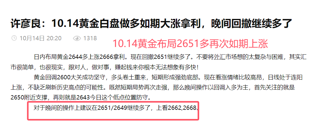 昨日黄金上午提示2644多大涨2666,晚间回撤2651再次开多又是上涨2661,两次开多均拿利。