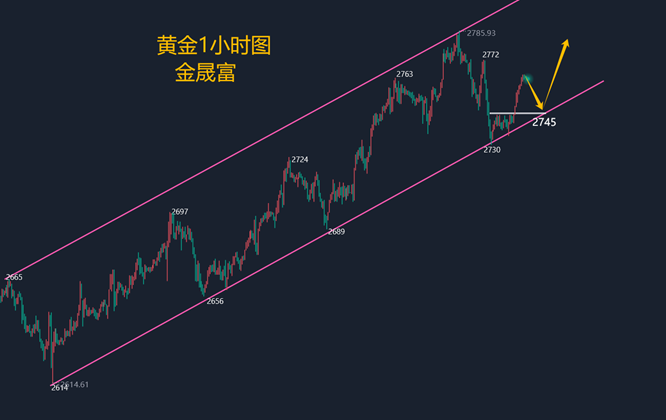 周三黄金向上发力看涨2785-95一线,突破2800也就是顺势而为的行情,近点黄金可见支撑点位2750附近支撑,突破相对的反转点位,向上收复就看2780-90,符合上行节奏,跌破行情可见2740位置,上涨有节奏,收复前面起涨发力点,市场后面反弹也不短多行情,现在市场在2762位置,耐心等待回落,整体思路就围绕亚欧盘布局,美盘市场在根据亚欧盘节奏去判断。综合来看,今日黄金短线操作思路上金晟富建议回调做多为主,反弹做空为辅,上方短期重点关注2772-2785一线阻力,下方短期重点关注2745-2750一线支撑,各位朋友一定要跟上节奏。要控制好仓位及止损问题、严格设止损,切勿抗单操作。具体点位以盘中实时为主,欢迎前来体验,交流实时行情,进群关注实时单。