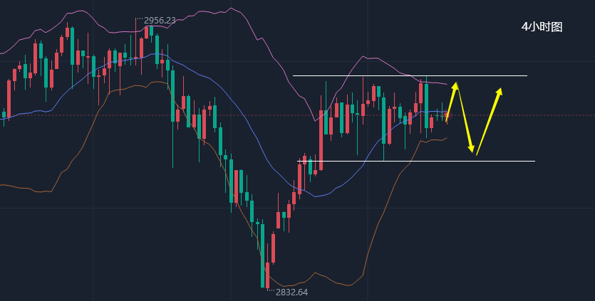 4小时图行情横向运行,目前布林带区间收缩至2926-2900,均线粘合于中轨,暂时处于无趋势状态,早盘行情小幅冲高2918一线回落,多头上涨无力,回落支撑关注2900一线可以多,欧盘上方关注2926阻力再结合形态是否空。区间不破震荡为主。进入江沐洋主页https://pinglun.fx678.com/analyst/116133简介里有连系方式!