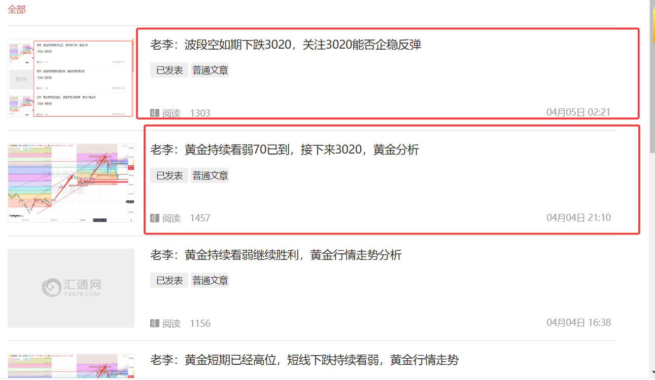 汇通网4月6日讯—— 老李:黄金提示看空3020后又提示关注3020企稳反弹恭喜更上的朋友,黄金行情走势分析