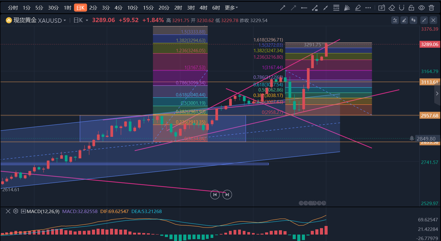 单纯的技术上来看,周线大阳线支撑下多头掌控全局,亚洲盘目前已经维持了一个多交易月的开盘必涨规律。盘面上,现货黄金美盘低点3220-15区域多空强弱分界线,之上强势,跌落走弱;亚盘回撤低点3185-90多空分水岭,之上多头,跌落走空头甚至快速暴跌。上方来看,目前依旧盲区,关注3245区域,然后3265-80及3300大关。操作上,要么多看少动,要么别怂跟随市场情绪就干;但,短期保持多头看涨的同时,随时提防建国关税大变脸引发黄金快速崩盘、跳水行情;短期快速拉涨后,跌起来会更凶狠,崩盘或拉升都是一个消息的事!