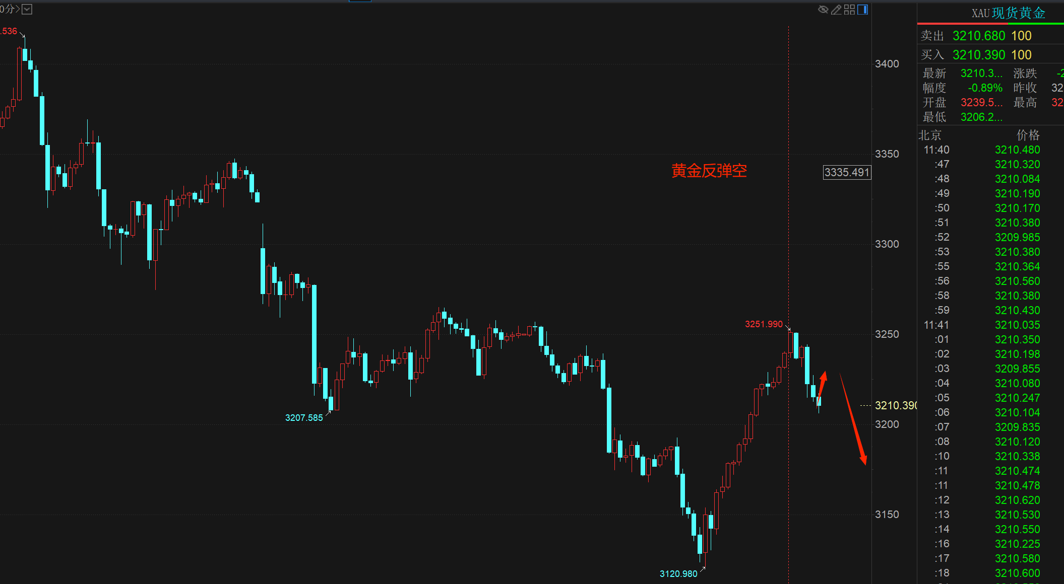 昨日黄金亚欧盘下跌至3120,后底部v反转,今天早盘再创新高,最高涨到3252附近,早盘黄金直接下跌,午后反弹后继续做空,昨天黄金欧盘到美盘单边上涨空间巨大,短期面临下跌调整需求,午后反弹再空一波,跌下来我们再考虑做多,下方关注3200和3190的支撑位,上方关注3230的压力位