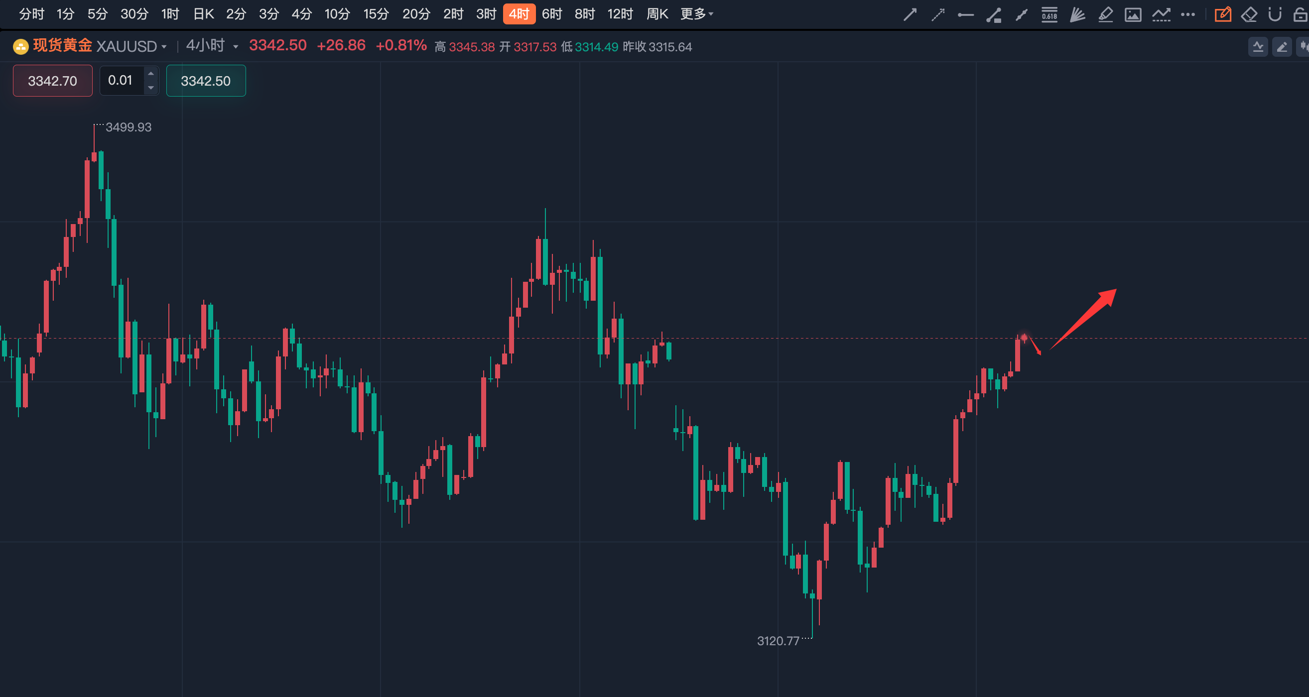 美元指数跌破100关口至99.33,创两周新低,主因市场担忧美国财政赤字货币化(特朗普减税法案或增加3-5万亿美元债务)及国债需求疲软(20年期国债得标利率创5.047%高位)。美元走弱提升了黄金作为替代资产的吸引力; 穆迪下调美国信用评级至AA1,进一步削弱市场对美元信心;以色列可能打击伊朗核设施,叠加俄乌冲突僵持,避险需求激增,黄金与日元、瑞郎同步走强;美国对贸易伙伴的90天关税暂缓期即将结束,新协议尚未达成,市场关注日本与美国财长的汇率谈判;今日黄金开盘震荡上涨再创新高,延续前几日涨势,最高触及3344美元附近,本周日K三连阳,高点台阶时式上涨,4小时黄金震荡上涨通道形成,均线多头排列,布林口开口朝上,金价依托布林上轨附近运行,但是RSI显示超买,操作上建议回踩多。