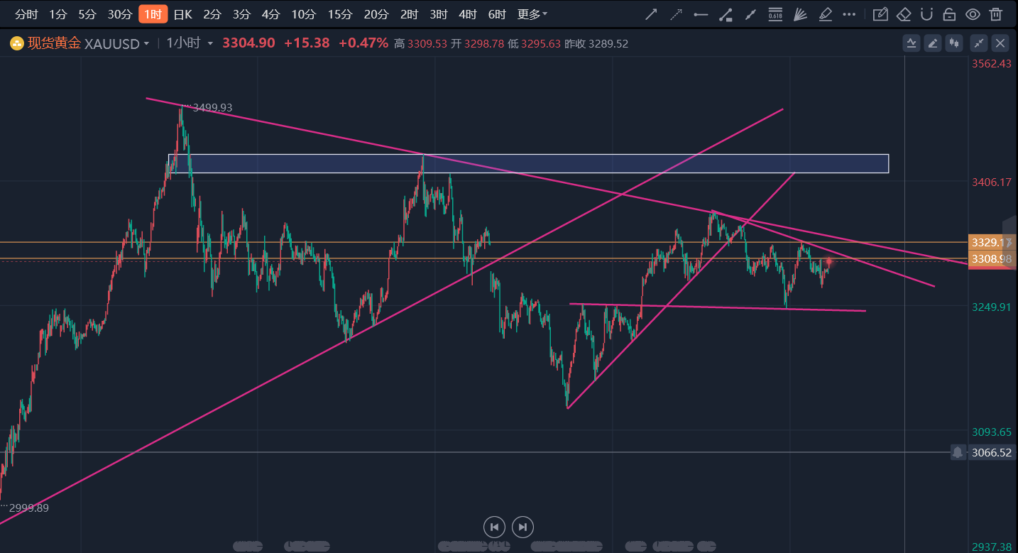 黄金而言,本周需要重点关注3330-20区域,本周初下破后周四及周五虽然都有测试,但没能上破,这里构成接下来重点*,同时基本与3500以来下降趋势压力重叠。因此,下周多空分界3330-20区域,下方看冲高回落,向上突破的话,恐怕3360-65难以*多头,进一步关注冲高3400-15或3438-45区域*再跌;下方的话,短期关注3240-45区域,重点3155和3120区域!在不考虑非农数据及突发消息如关税,地缘局势情况下,技术面而言,本周冲高做空黄金为主,关键位置做反弹。第一,关注3308-3313区域其次3330-20前高空,突破则顺势跟进一波多单后,参考上述阻力继续高空!