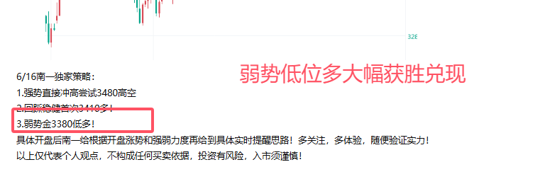 汇通网6月17日讯—— 南一;黄金摸低测试完成!多头启动继续开启!3388持多!
