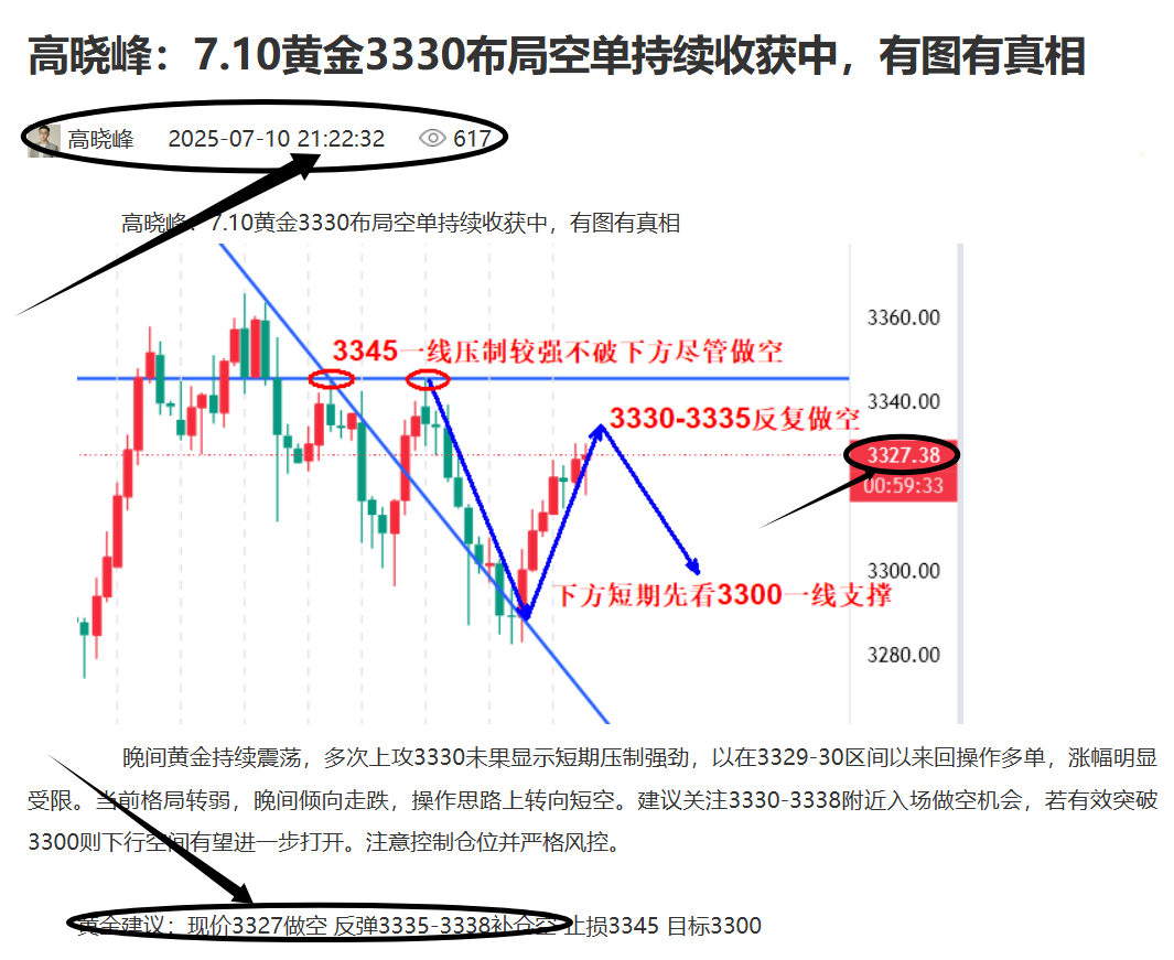 汇通网7月10日讯—— 高晓峰:7.11黄金日内大获全胜,多空反复获利中