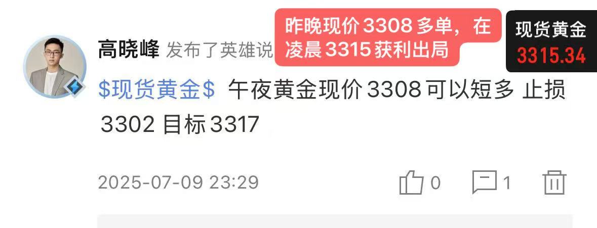 高晓峰:7.11黄金日内大获全胜,多空反复获利中