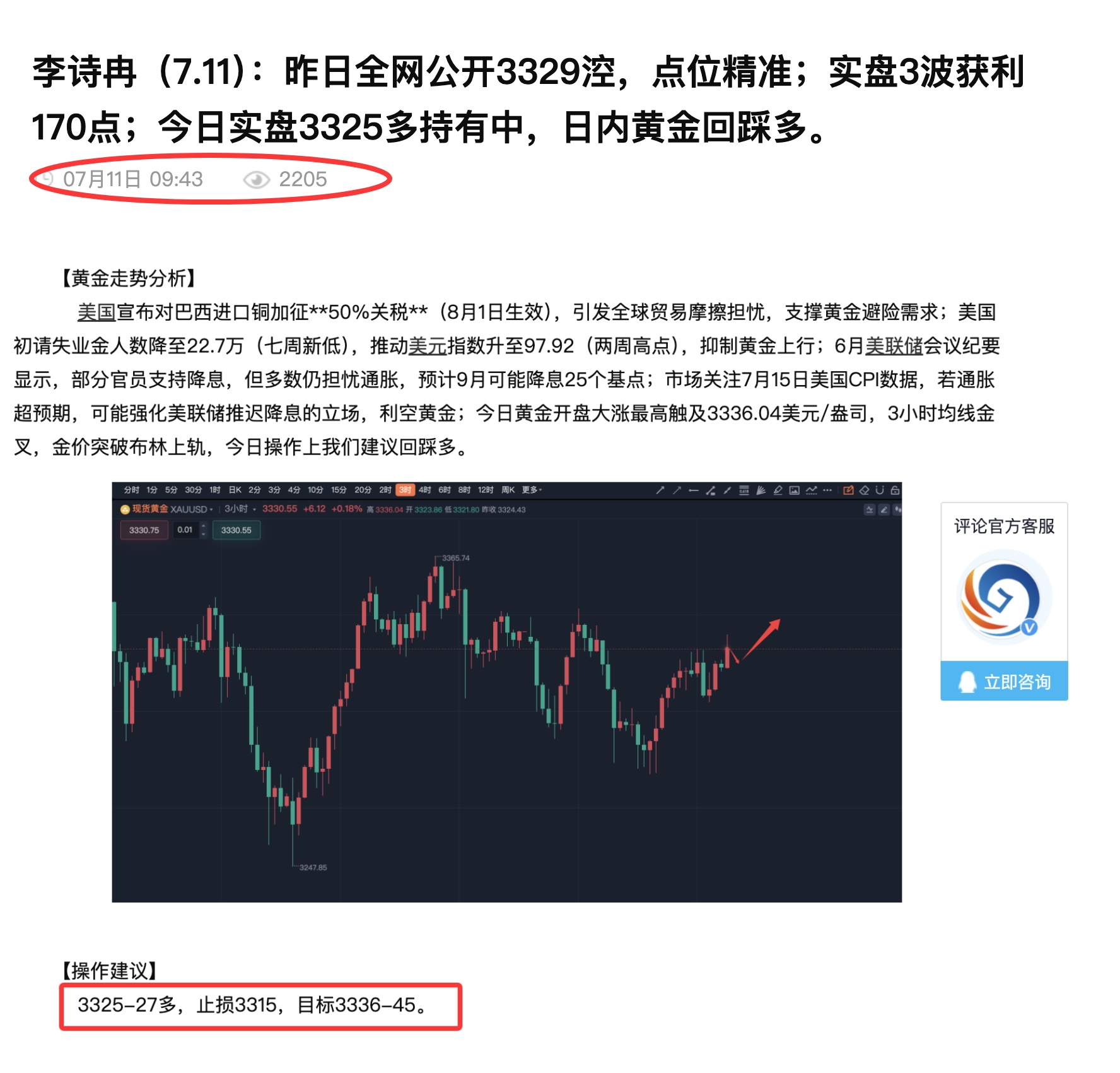 李诗冉(7.13):本周实盘9单获利690点;下周黄金走势分析。