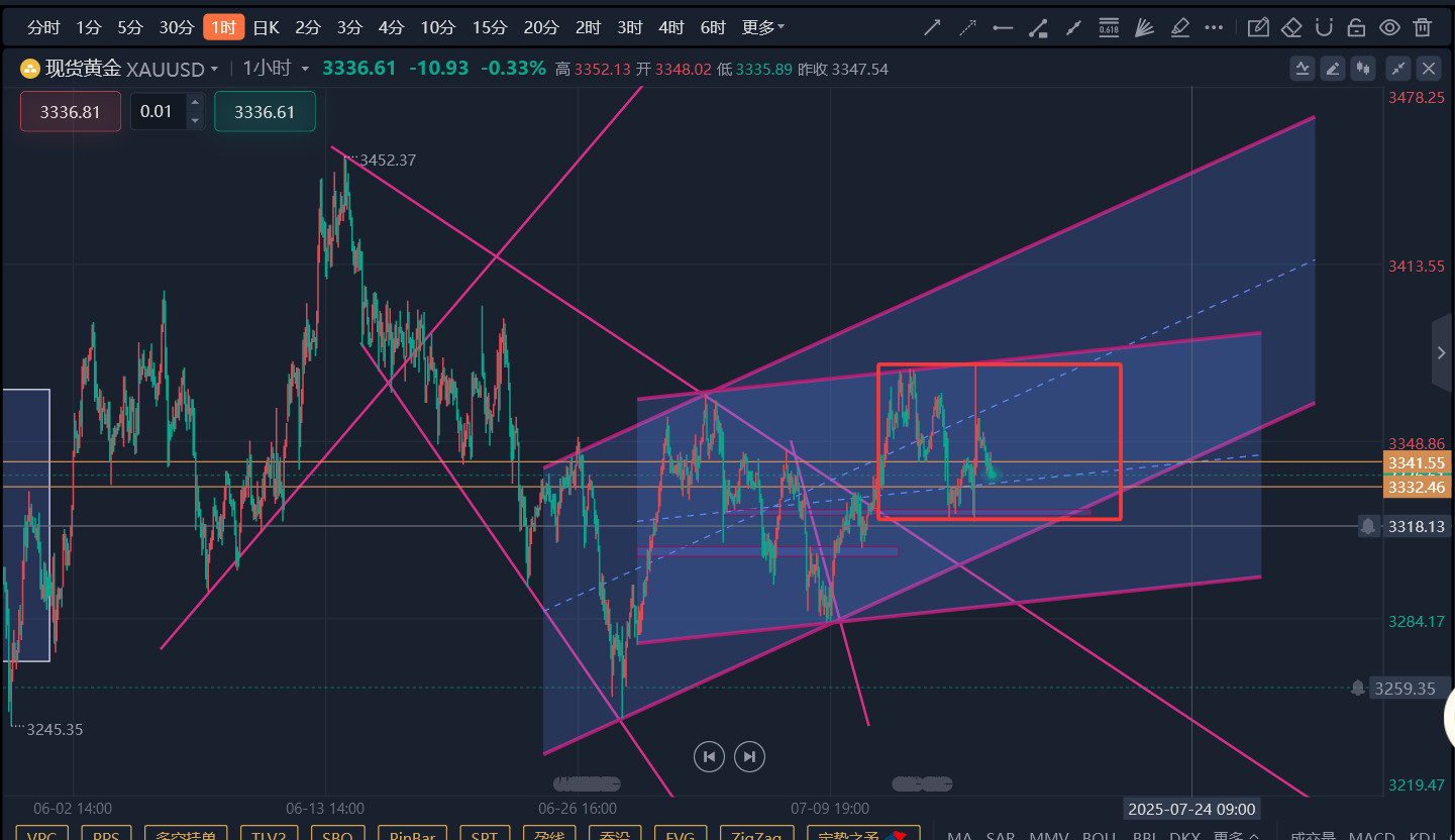 日内如果要直接反弹应该不会跌破3323一线。所以3332-3327附近就是日内第一个布局多单点位。