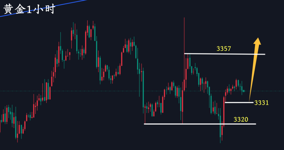 今日黄金周线收官,我认为应该以震荡偏多的思路看待,重点关注3331—3330一线支撑看多,分水岭3320,上方压力看3351—3357,强压3375附近可以考虑空。
