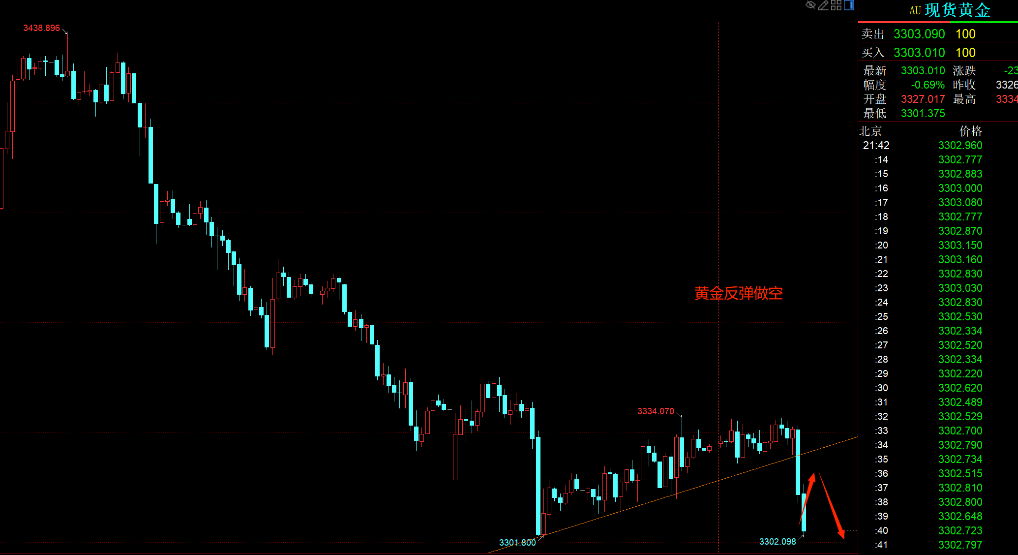 黄金从昨日到今天黄金一直处于震荡上涨的走势,今天小非农数据利空黄金,黄金暴跌,破位上升趋势线,今天美盘黄金依托趋势线的压制,反弹后可以继续做空,上方关注3324的压力位,今天凌晨有重磅数据,大家注意风险,轻仓带止损去操作。