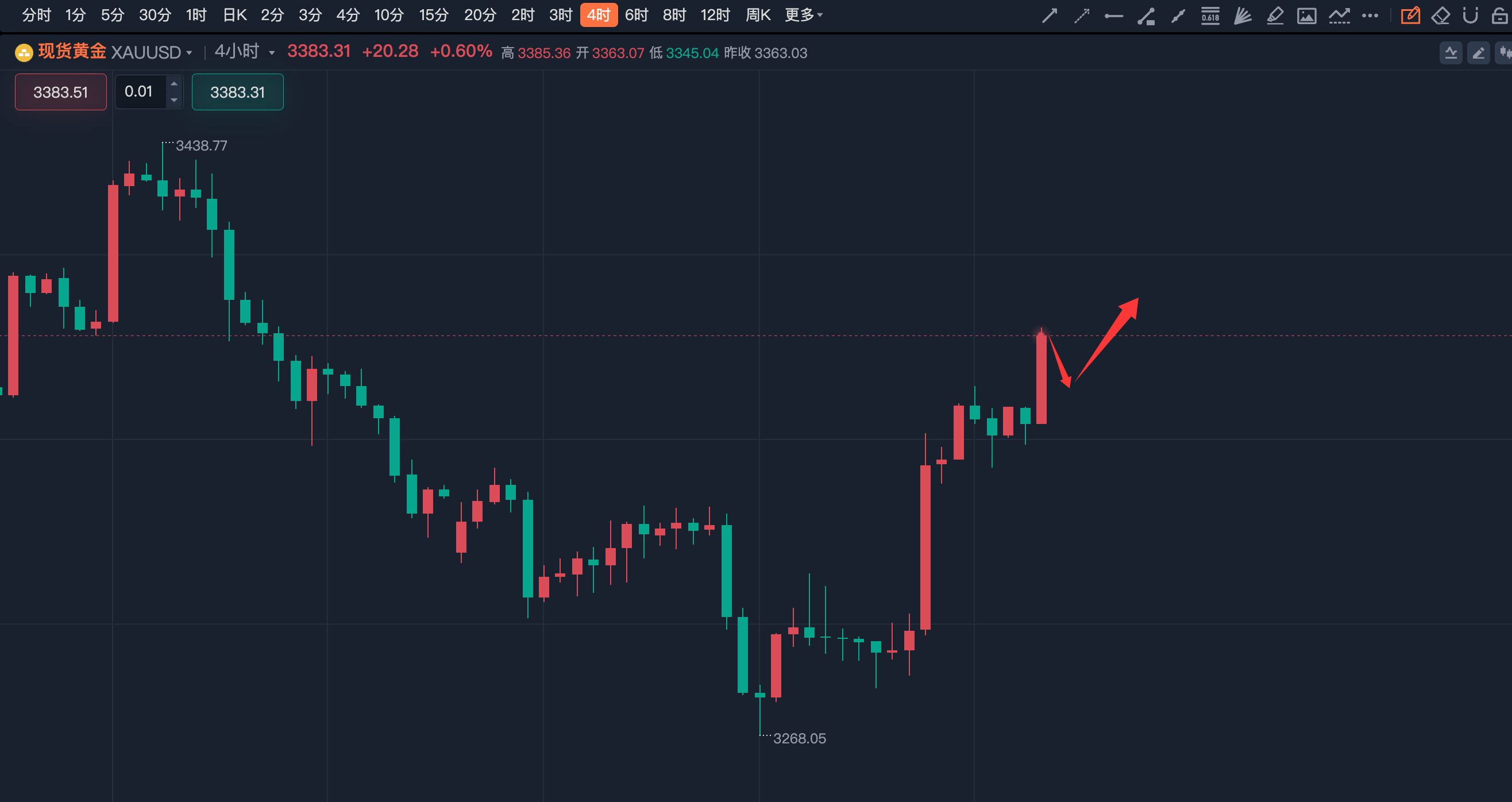 7月非农就业数据仅增加7.3万,远低于预期的11万,且6月数据大幅下修至1.4万,失业率升至4.2%。市场对美联储9月降息的预期概率从38%激增至90%,甚至部分机构预测可能降息50个基点;美元指数8月1日大跌1.39%,10年期美债收益率跌至4.223%,创4月初以来最大单日跌幅,低利率环境利好黄金;特朗普对加拿大、巴西、印度等国加征高额关税(25%-50%),导致全球股市下跌,市场避险情绪升温,黄金作为避险资产受到追捧;鲍威尔此前未明确9月降息,但疲软的就业数据削弱鹰派立场,市场关注8月就业数据(9月5日公布)以判断美联储下一步行动;今日早间黄金冲高回落后白盘一直处于震荡态势,整体在3350-62区间震荡,晚间美盘黄金大涨至3385.06美元/盎司,印证了我们白天看涨的思路,技术面4小时均线多头排列,布林口呈现放大形态,金价快突破布林上轨,黄金多头强势,晚间操作上我们建议还是回踩多。