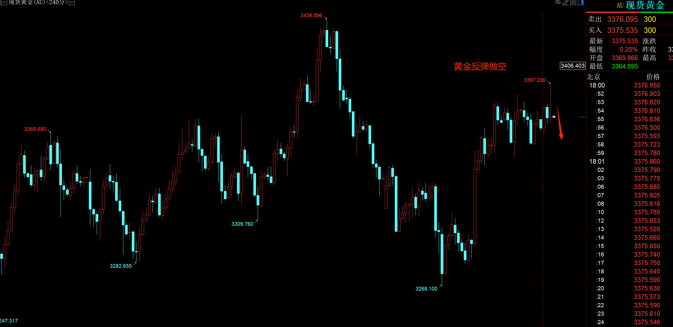 昨天欧盘公开黄金3370和3380空,实盘3370空,保本离场,反手做哆,高位3380止盈,并且反手做空黄金,稳健着3370止盈,公开提示布局,拒绝马后炮。
