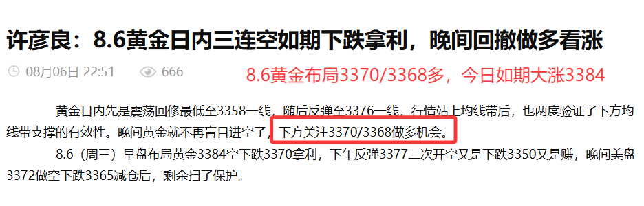 许彦良:黄金上涨3370,小仓止盈,大仓留中线。