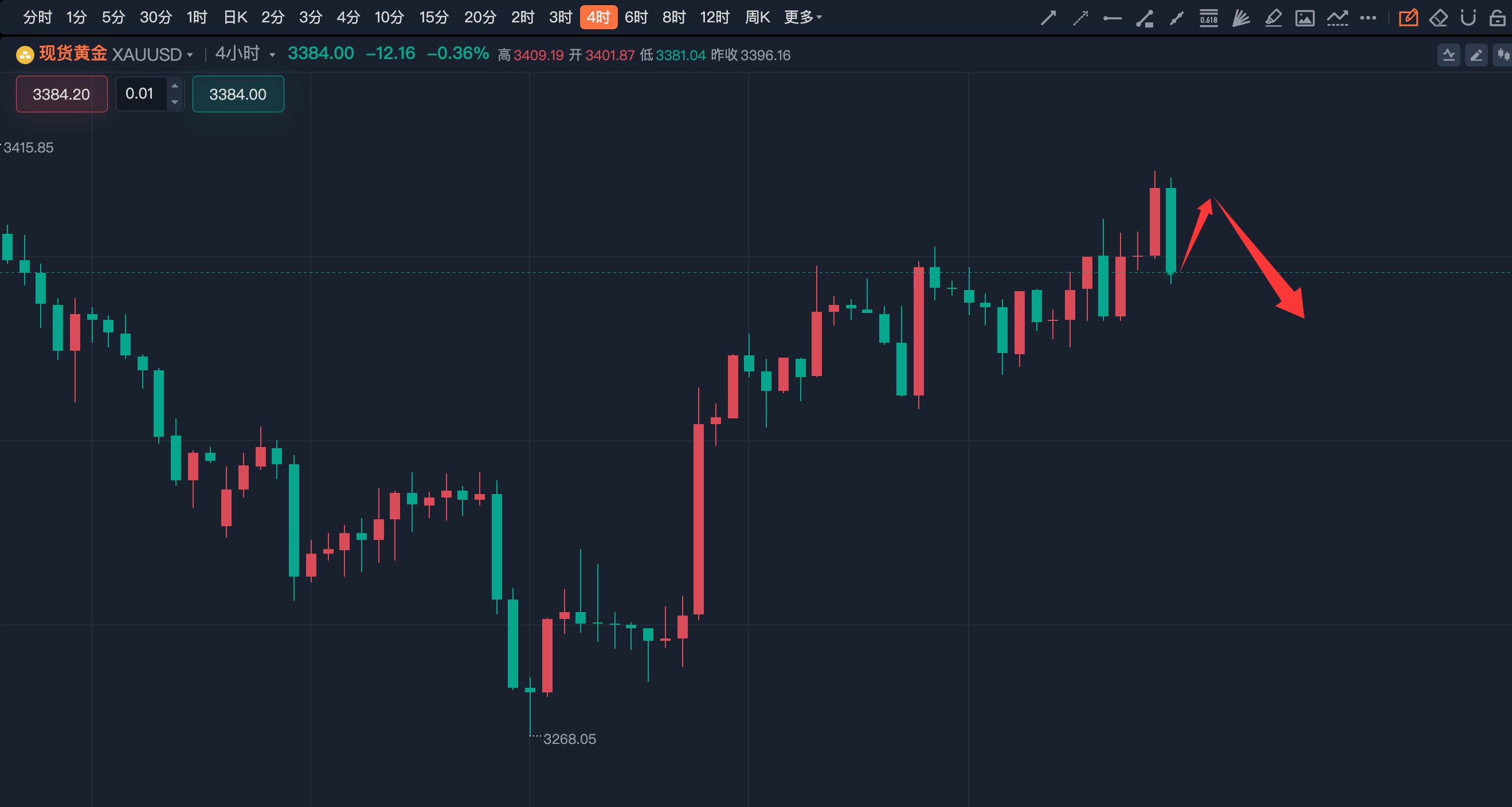美国7月非农就业数据不及预期(新增7.3万人),市场对9月降息的概率升至**90%以上**,削弱美元吸引力,支撑金价;特朗普对印度、日本等国加征关税(最高100%),加剧贸易摩擦,推升避险情绪;中东局势(伊朗-以色列冲突、红海航运风险)持续影响市场;美元指数近期回落至98.18(7月28日以来最低),缓解金价下行压力;若美元进一步走弱,黄金可能迎来新一轮上涨;花旗银行上调未来3个月金价目标至3500美元/盎司,认为美国经济放缓、贸易摩擦和美元疲软将支撑金价;今日早间黄金开盘冲高回落,最高触及3409.19美元/盎司之后下跌至最低3381.04美元/盎司,目前交投于3383美元附近,结合近几日黄金的走势,日K显示黄金高点每日逐步增高,呈现阶梯式上涨,由此来看本周黄金是一个逐步震荡上涨的趋势,整体多头偏强;指标来看,3小时MACD已死叉,4小时均线开始拐头向下,黄金近几日涨的太多,本周周尾黄金估计有一轮下跌调整,操作上我们建议反弹空。