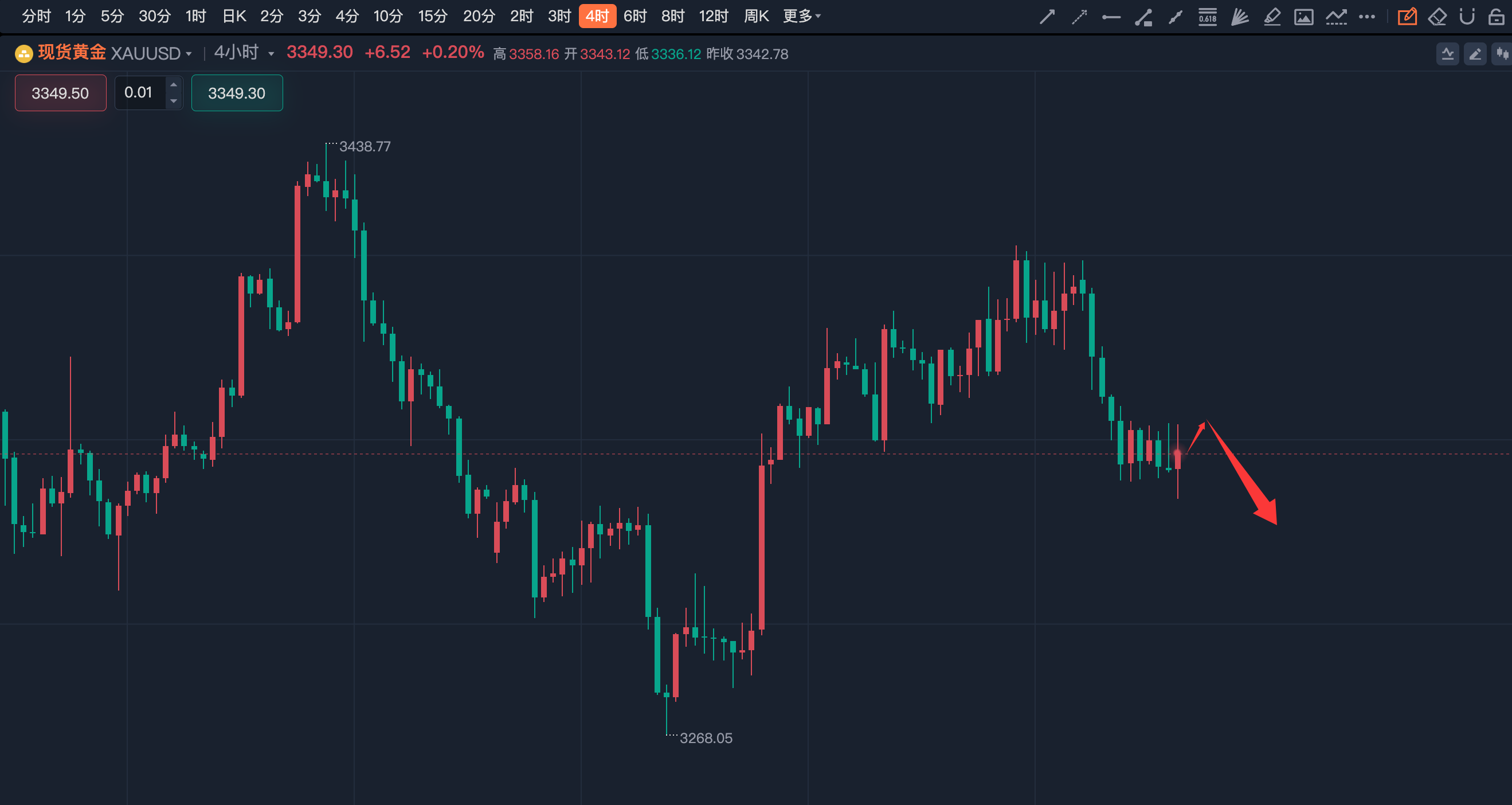 美国总统特朗普周一(8月11日)明确表示不会对黄金征收关税,消除了市场此前对黄金可能被纳入贸易争端的担忧。这一表态导致投机性买盘撤离,金价从上周五的历史高点(3534.1美元/盎司)大幅回落,现货黄金周一暴跌1.6%,最低触及3341.25美元/盎司;特朗普计划于8月15日与俄罗斯总统普京会面,讨论俄乌冲突的和平解决方案。市场对谈判可能取得进展的预期削弱了黄金的避险需求。不过,乌克兰和欧洲方面对可能的领土让步表示反对,谈判仍存在不确定性;特朗普签署行政令,将中美关税休战期延长90天,避免关税大幅上升,进一步缓解了市场避险情绪,黄金作为避险资产的吸引力下降;晚间CPI数据公布利多黄金,黄金小幅上涨后再次回落,目前黄金交投于3349美元附近,整体来看黄金还是偏弱,技术指标,4小时均线空头排列,金价运行于2小时布林中轨下方,晚间操作上建议还是反弹继续空。