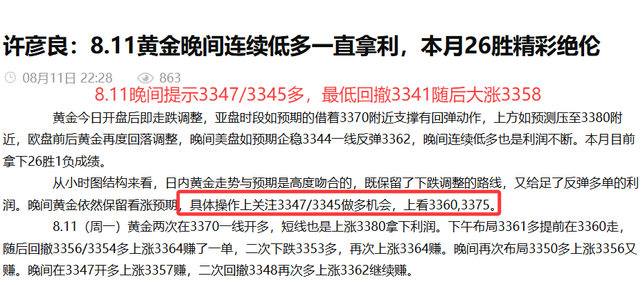 8.12(周二)黄金3355两次做空下跌3344,欧盘3358做空又是如期下跌。晚上3342多,3336补仓多,数据公布后,3346/3344追多大涨3355,晚间回落3341再次开多上涨3355又是赚。目前拿下32胜1负成绩。(由于每天文章有限,只能更新部分策略,全部策略可以找到笔者查验)