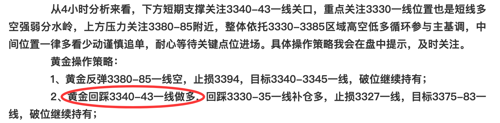 黄金今天早间我们就给了3340-43一线做多的思路,截止目前完美符合本人行情策略分析,黄金早间3375一线回落,直接目前最低回调至3341一线,在3342一线我们实盘及时给了做多策略,下方3340是前期支撑位,所以做多没有问题的,只少可以博取一波反弹利润,如果你目前操作不理想,希望田浩洋能让你的投资少走弯路,欢迎前来沟通交流!