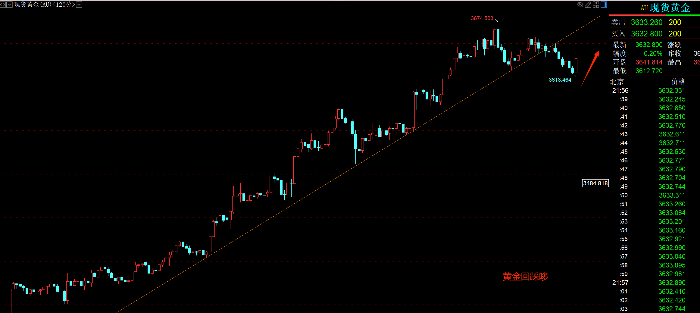 黄金建议:黄金3622哆持有,回踩3623-25可以继续哆,防守3612,目标3645-65