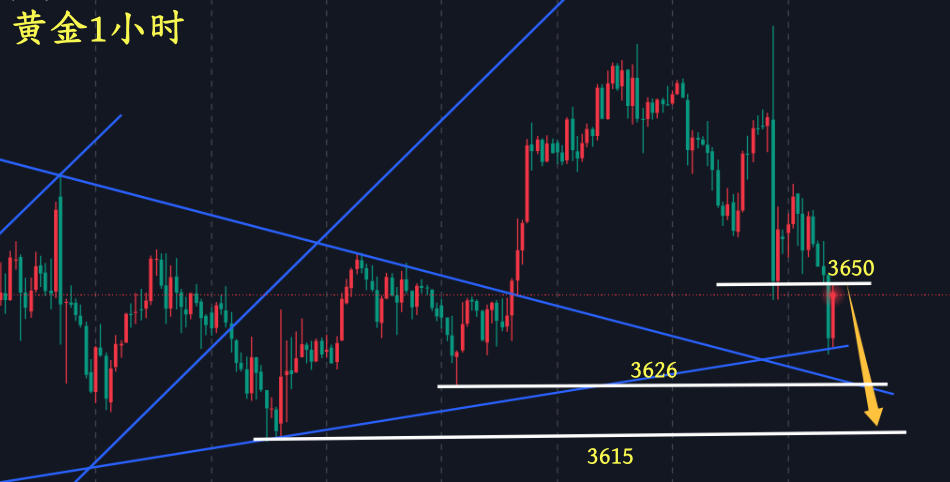 因为从早上3670算的话到3600有70美金幅度,基本就差不多了。那么可以在3600附近看一波一波反弹。