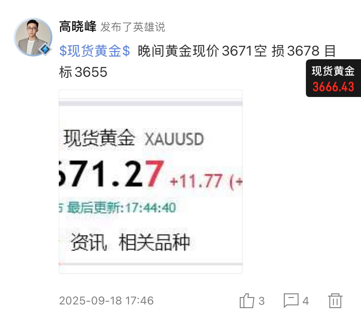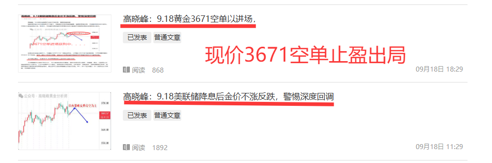 高晓峰:9.18晚间黄金策略反弹3655-60继续空