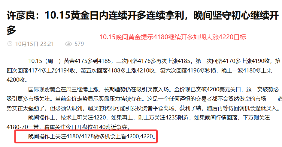 汇通网10月16日讯—— 许彦良:10.16黄金新高不断不猜顶,顺势继续开多是王道