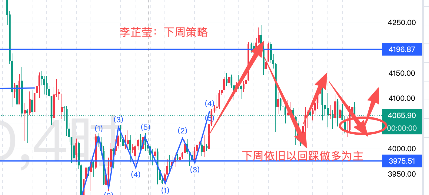 基于上述分析,下周操作可采取回踩 4050 做多的策略,止损设为 4040,目标看向 4100。需密切关注关键点位的突破与支撑情况,灵活调整仓位,严格把控风险,在变幻莫测的黄金市场中稳健前行。