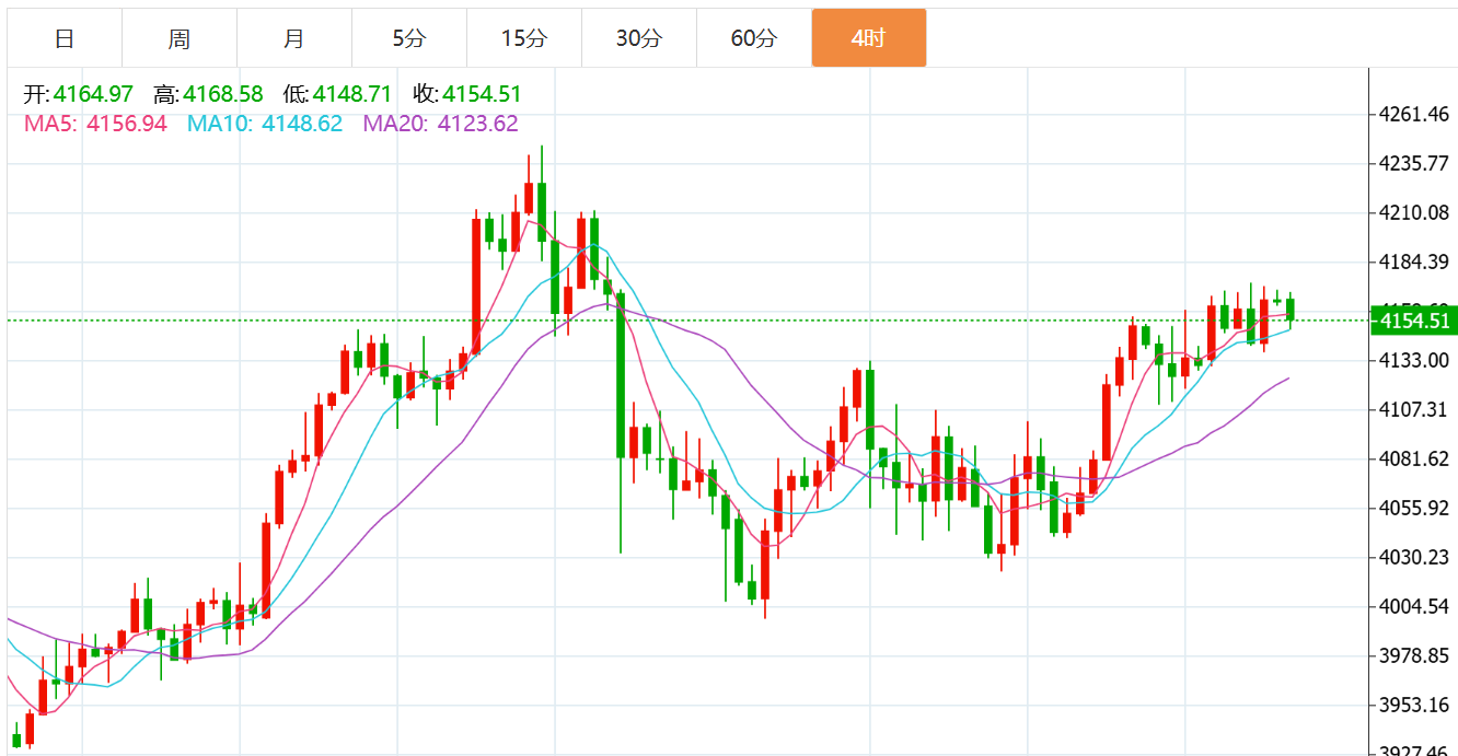 黄金技术面分析:昨日黄金日线小幅反弹收阳,波动并不算大,从最低的4132美元到最高的4173美元,最大波幅也仅为41美元,4173附近也是趋势线阻力,日线虽然收阳看多。但是趋势线未上破站稳之前,还是不建议激进做多。四小时图来看,黄金三角收敛格局暂未改变,下行连线趋势线压力在4173-75.只有有效上破趋势线压力,才能继续上看,那么也是新一轮机会,反之还是收敛末端整理,1小时级别走势上价格开始慢慢跌破短期的支撑带,价格开始承压短周期均线,在短线走势上可能会有一些调整的空间,关注下短线的调整修复情况。今日继续关注三角形上轨的压力位,也是今日的多空分水岭,若压制有效看回落;反之,会进一步上涨。由于今日为感恩节假期,波动率可能会缩小,稳健的不妨观望,等节后再做。综合来看,今日黄金短线操作思路上贺博生建议反弹做空为主,回调做多为辅,上方短期重点关注4175-4195一线阻力,下方短期重点关注4120-4100一线支撑。