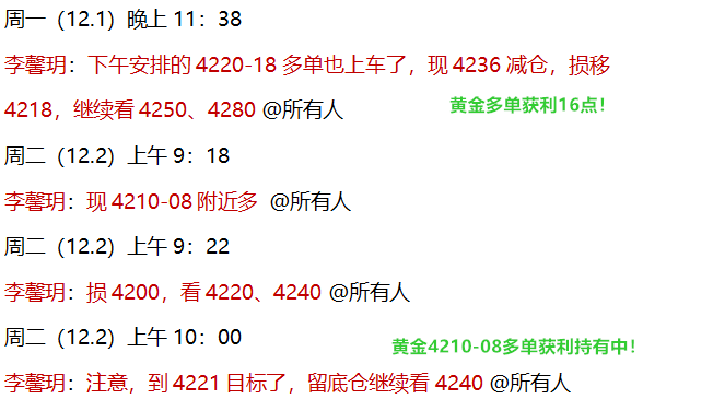 汇通网12月2日讯—— 李馨玥:12.2黄金早盘4208公开多单又获利,高位震荡多空卡点做!
