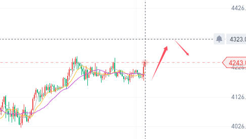 3.意外突破见4308逢高空或持续大洗盘弱势回撤见4185也是低多区域,其他位置临盘信号参与