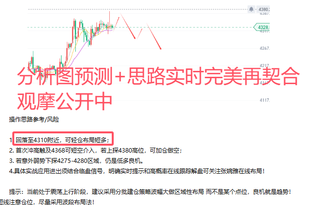 即便行情短暂冲高,也大概率会给到回撤入场机会。事实上,我们早有布局,此前便提示4365附近可尝试高空,实战操作中,摒弃“涨则追涨”的惯性思维,依托形态变化与趋势博弈才是理智之举。