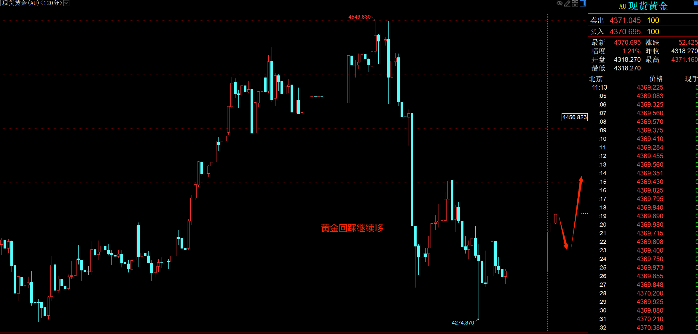 汇通网1月2日讯—— 秦羽墨:1.2全网公开低点思路,4285.4291.4300哆,获利2330点,回踩继续哆一下