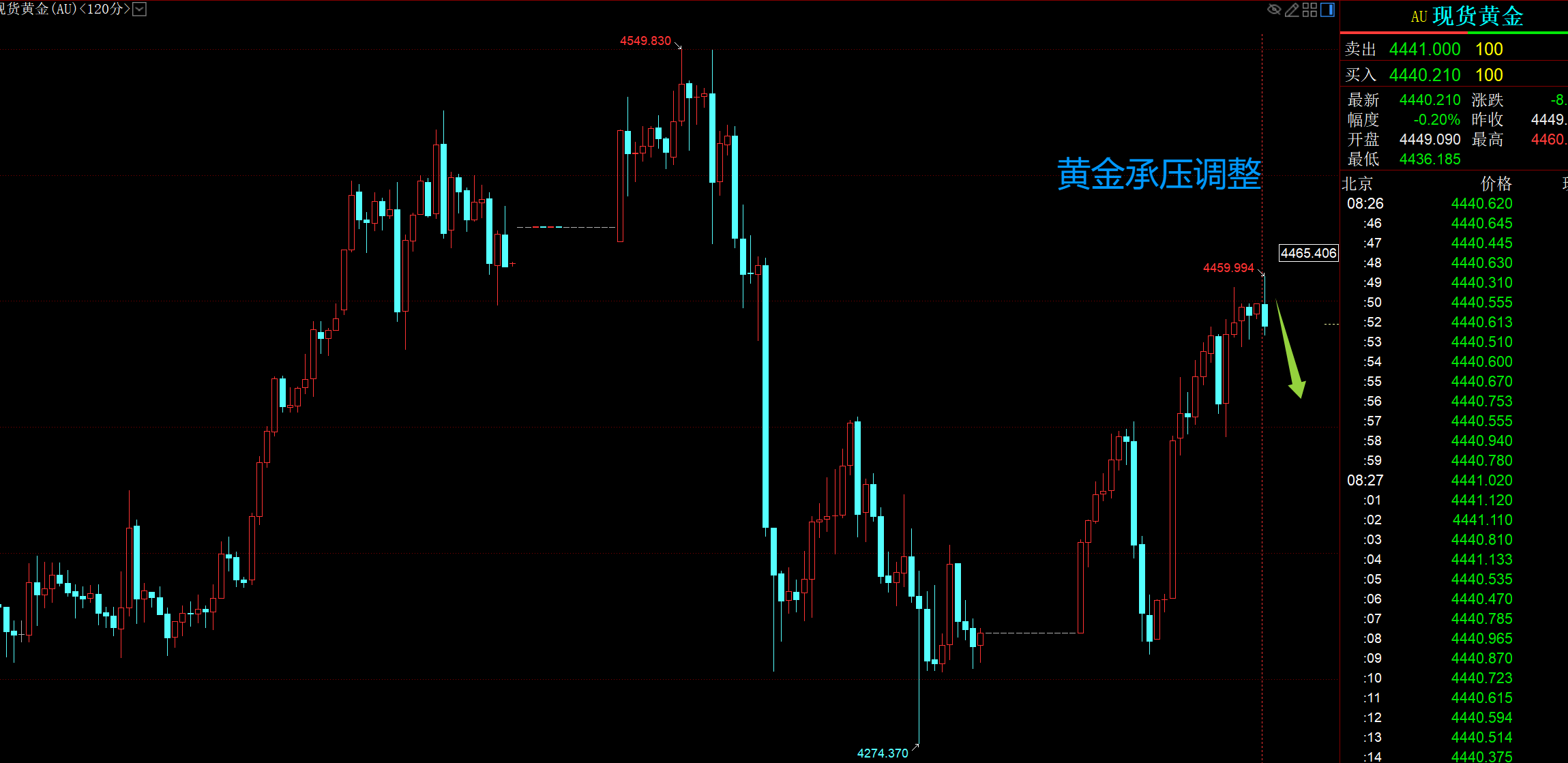 周末由于避险消息的刺激,黄金直接跳空高开,黄金延续强势上涨,短期缺口并没有回补,昨天缺口刚好突破强压,今天黄金高位可以做空,目前4460附近,是上方压力区域,黄金在底部走出头肩底后,回踩可以继续哆,不过需要等回踩再哆,早盘关注4460压力位,高位可以先空一下。