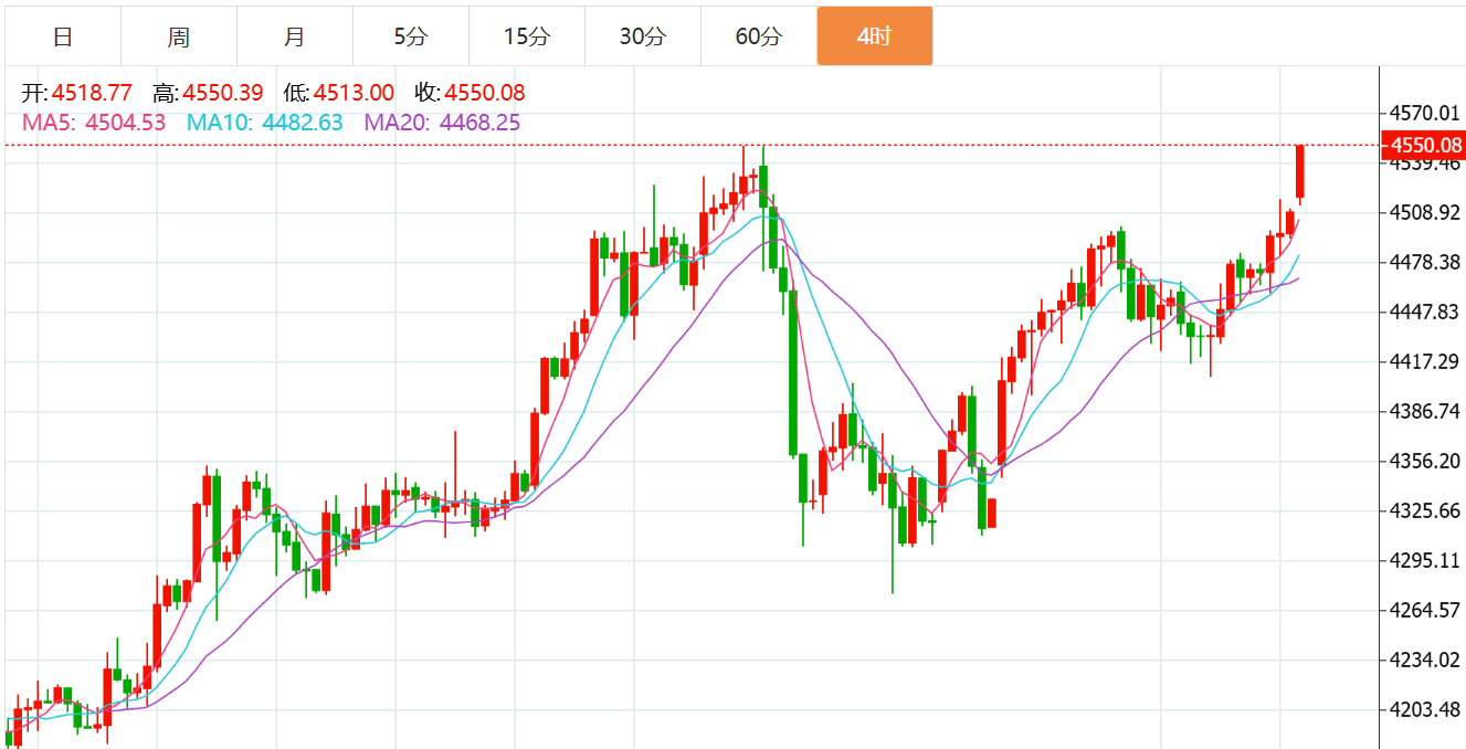 黄金技术面分析:当前盘面来看,黄金潮起潮落自有时,金价涨跌亦循势,周五黄金受非农的影响之下再次突破了4500一线附近,并且最高触及到4517后止步回撤修正,而美盘尾部最低下跌于4481附近后再度上行,短线内一方面是趋势所引起的连续性爆发,另一方面是因为非农就业数据的影响,美国12月非农就业数据不理想,市场预期美联储可能会降息,加上地缘风险,导致黄金避险情绪高涨,多头目前仍然处于主导地位,从技术面而言,日线均线系统也在稳步上行,短线内继续呈现了多头的排列,而周线也是在连阳之后收于单阴的态势,而这种走势也是标准的多头回撤修正的单阴模式,而目前各个指标均处于强势,红色能量柱继续放大,上行趋势明显,后期仍有望继续冲击历史新高4550一线位置,而下方的首要支撑则维持于周六凌晨的回撤低点4480一线位置,此位置也将有可能是后期的多空分水岭,则下周我们还是先围绕于多头形态进行布局,如多次承压回撤的话,则再考虑调整方向,则周一如先回撤于4495-90附近做多,防守4480,目标上看4540附近。综合来看,黄金今日短线操作思路上贺博生建议以回调做多为主,反弹高空为辅,上方短期重点关注4570-4590一线阻力,下方短期重点关注4520-4500一线支撑。