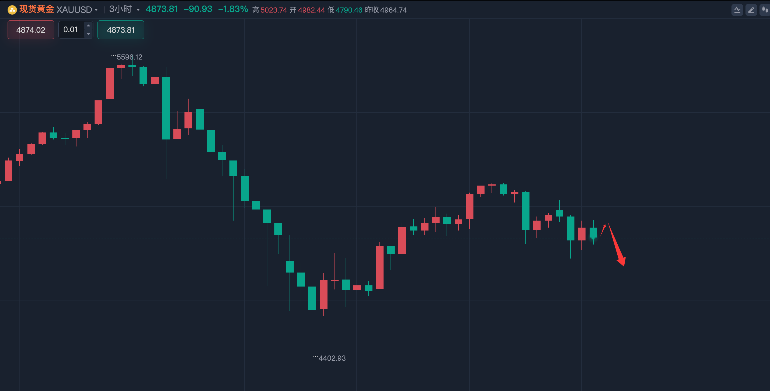 在经历前期暴涨后,市场情绪已非常脆弱,沃什被提名为下任美联储主席候选人这一消息,就如同在拥挤的高台上喊了一声“鬼来了”,直接触发了情绪的恐慌性逆转。这种情绪主导的抛售,其力量远超过单一利好,可能在今日持续发酵。市场普遍认为沃什的立场偏鹰派,担忧其上任后可能推动货币政策收紧(如缩表),导致美元走强、实际利率上升,这对不生息的黄金是直接的利空。尽管有投行认为市场可能过度解读,但在情绪敏感期,“预期”本身就能驱动交易。花旗的报告警示了一个结构性风险:过去几年金价上涨积累了约20万亿美元的账面浮盈。哪怕只有5% 的获利盘(即1万亿美元)选择抛售了结,其冲击力就足以抵消全球全年的实物黄金需求。在情绪逆转的当下,这部分潜在抛压随时可能涌出,放大跌幅。今日开盘黄金开盘小幅上涨后大跌230美金,3小时均线死叉,MACD死叉,金价在布林中轨下方运行,黄金空头再次占据上风,黄金还会继续下跌调整,晚间操作建议反弹继续空。