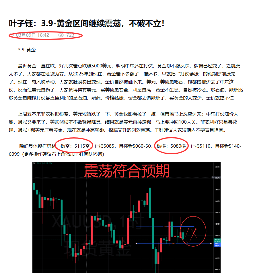 汇通网3月10日讯—— 叶子钰:3.10-欧盘精准获利,美盘依旧震荡!