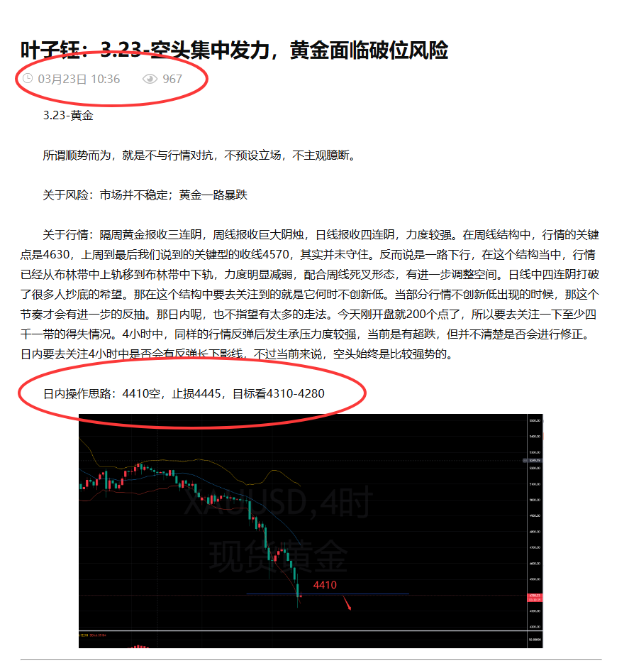 汇通网3月25日讯—— 叶子钰:3.25-4595,4585空单双双获利,继续减仓持有