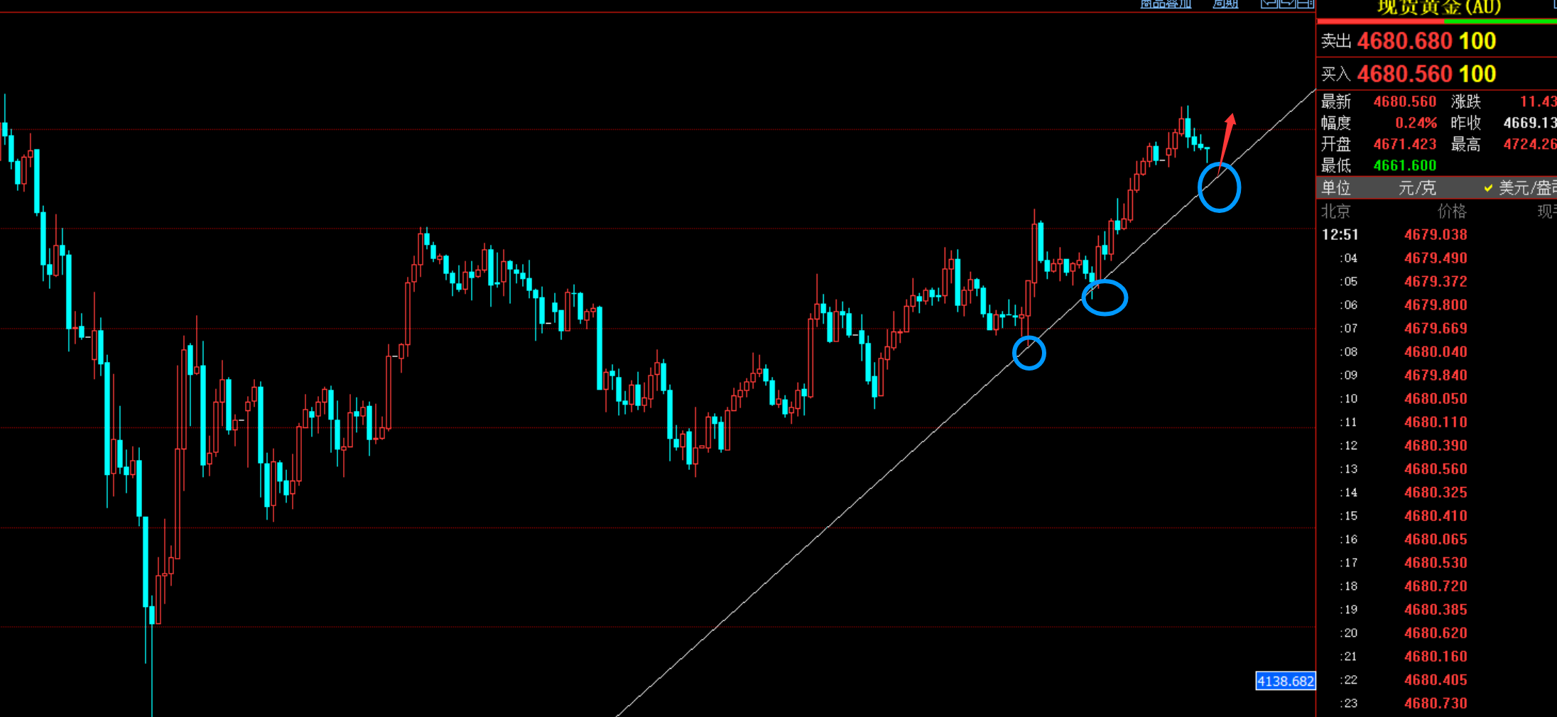 黄金昨日亚欧盘震荡,美盘震荡上涨,二次突破4600后,尾盘大涨到4690附近,今天早盘黄金延续多头,继续上涨到4720,目前黄金再次回踩,给到我们继续低多的机会,午后关注趋势线的支撑,回踩后可以多一下,看高位震荡,或者延续,下方关注4650的支撑位