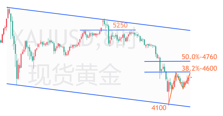 现货黄金4575压力成功回调,晚间通道下轨还需做多!