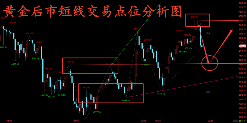 云杰:黄金仅到4580回落,夜间关注4510攻防