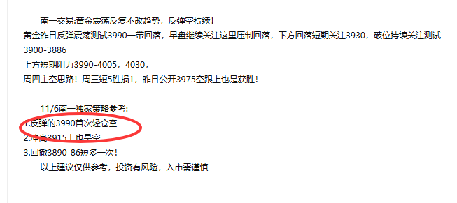 南一交易:11/6黄金4015区域空4004附近获胜减仓!