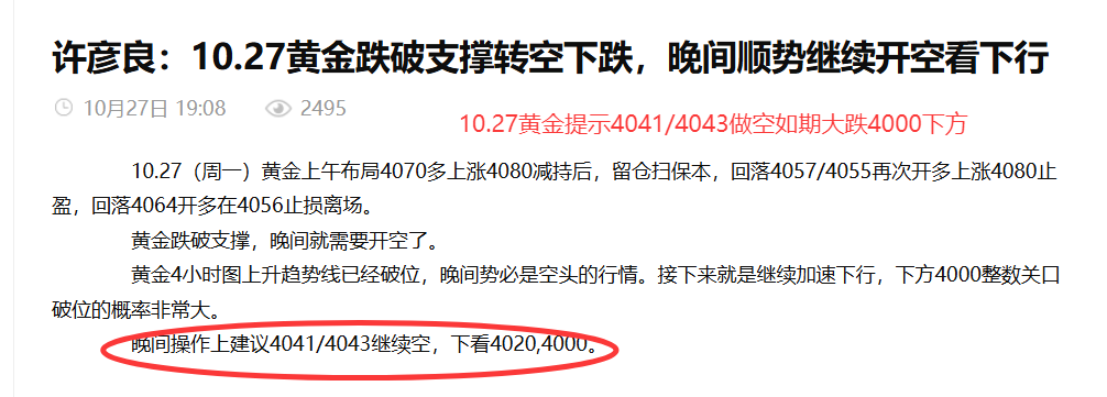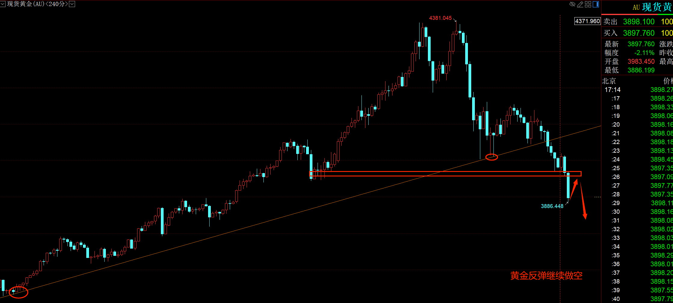 许彦良:10.28黄金上午开空如期大跌,下午反弹继续做空看下行