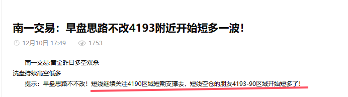 南一交易:黄金4193逢低多如期获胜!晚间利率决议注意风险!